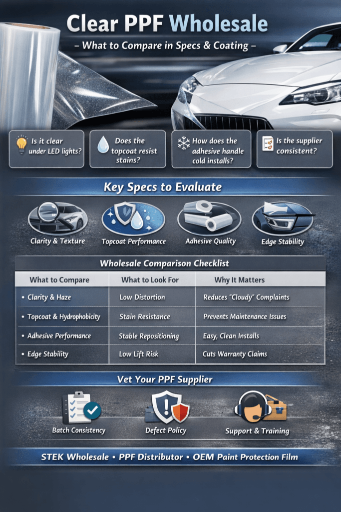 Use this as a buying worksheet when you’re comparing multiple lines (including STEK PPF options under stek wholesale, or alternative premium/value lines).